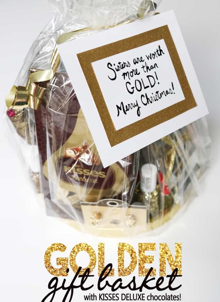 A "Golden" Gift Basket Idea with KISSES DELUXE Chocolates!